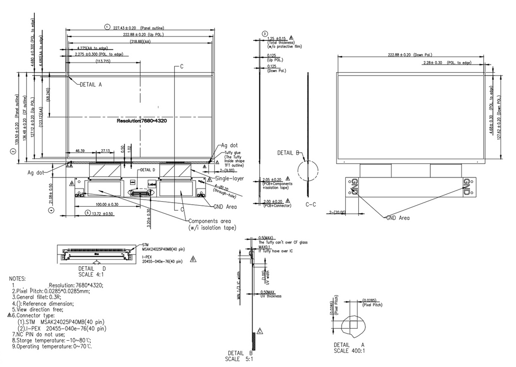 | 2 | Área activa LCD | 218,88 (ancho) x 123,12 (alto) | milímetros | |