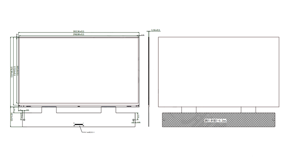 | 1 | Dimensiones del contorno | 302,36 (ancho) * 176,94 (alto) * 1,16 (largo) | milímetros | |